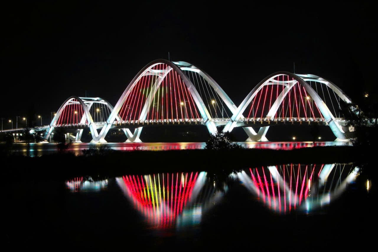 Phần thi công cầu Nhật Lệ 3 đã hoàn thành, hệ thống chiếu sáng đã hoàn thiện, các hiệu ứng hình ảnh đặc biệt khiến không gian ban đêm trên sông Nhật Lệ thêm lung linh