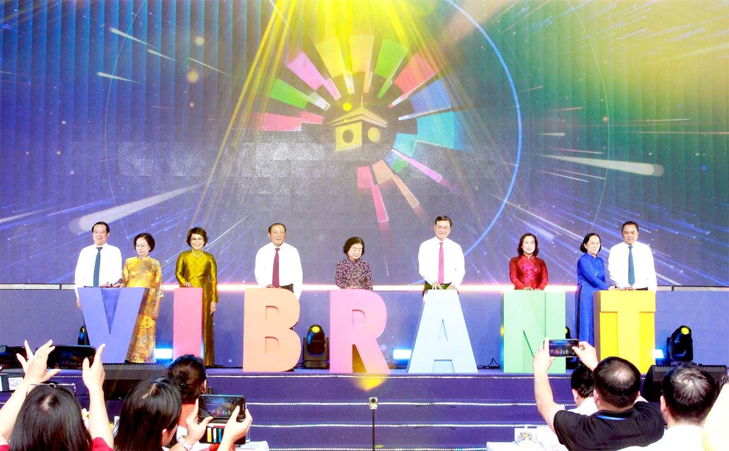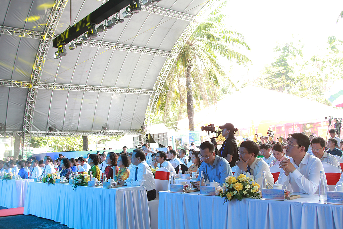 Lãnh đạo và các đại biểu thực hiện nghi thức khai mạc ngày hội. Ảnh: TITC