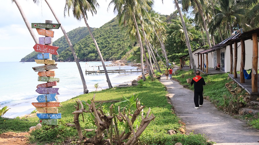 Thuê một chiếc xe máy, vặn ga chạy dọc theo con đường độc đạo uốn lượn ôm trọn lấy Hòn Lớn. Gió lồng lộng thổi tung mái tóc. Khoảnh khắc ấy, thanh xuân như đang căng tràn trong lồng ngực. Tự do, phóng khoáng và hoang dại.