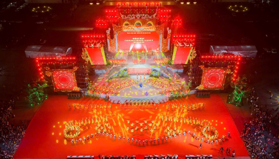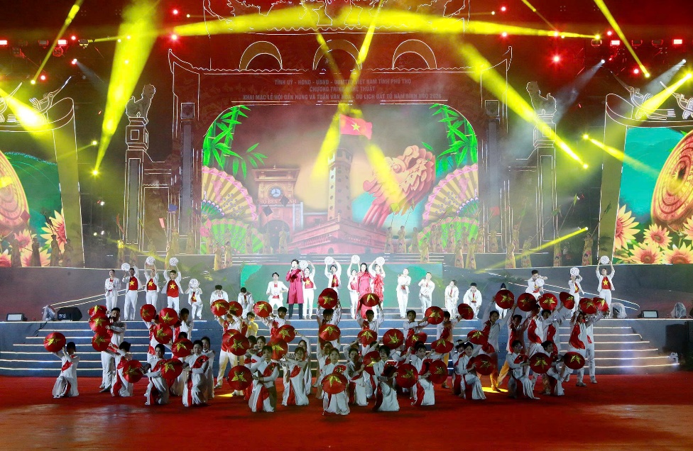Lễ hội Đền Hùng và Tuần Văn hóa - Du lịch Đất Tổ năm Bính Ngọ 2026 diễn ra từ ngày 17 - 26/4/2025 (tức từ ngày 1/3 đến hết ngày 10/3 âm lịch). Trong đó, Chương trình nghệ thuật “Linh thiêng nguồn cội - Đất Tổ Hùng Vương” là điểm nhấn quan trọng với sự tham gia của gần 500 nghệ nhân, nghệ sỹ, ca sĩ, diễn viên của trung ương và của tỉnh, trong đó có sự góp mặt của ca sĩ: Ngọc Anh, Quách Mai Thy, Tuấn Ngọc, Lê Vân, NSND Trọng Bình, NSƯT Thi Nhung, NSND Thúy Ngần… Mở đầu chương trình, màn trống hội rộn ràng vang lên như lời gọi thiêng liêng của non sông đất Việt, mở ra không gian đậm sắc màu huyền thoại.