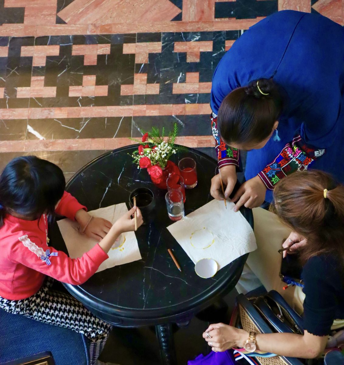 Không chỉ kể chuyện, workshop còn mời khách trực tiếp trải nghiệm quá trình sáng tạo. Dưới sự hướng dẫn chuyên môn của bà Hiền, người tham dự thực hành các kỹ thuật nhuộm chàm truyền thống, bao gồm vẽ sáp ong và buộc dây, tạo ra những sản phẩm vải nhuộm độc đáo để mang về. Mỗi kỹ thuật không chỉ thể hiện kỹ năng mà còn ẩn chứa những ý nghĩa biểu tượng sâu sắc trong nghề thủ công này.