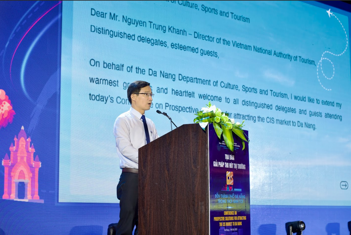 Mở đầu chương trình, Phó Giám đốc Sở Văn hóa, Thể thao và Du lịch TP. Đà Nẵng phát biểu khai mạc - ông Tán Văn Vương ghi nhận sự tăng trưởng ấn tượng của thị trường khách CIS đến Đà Nẵng trong năm 2025 – một nguồn khách mới giàu tiềm năng: “Trong 9 tháng đầu năm 2025, Đà Nẵng đón hơn 14,4 triệu lượt khách lưu trú, trong đó có 6,7 triệu lượt khách quốc tế. Thị trường CIS trở thành điểm sáng nổi bật, chiếm gần 42% tổng lượng khách quốc tế đến thành phố.”