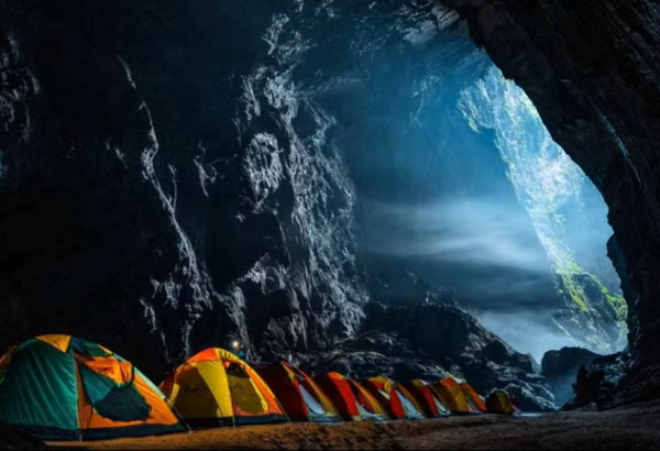 Cắm trại trong hang Sơn Đoòng. (Ảnh: Oxalis)